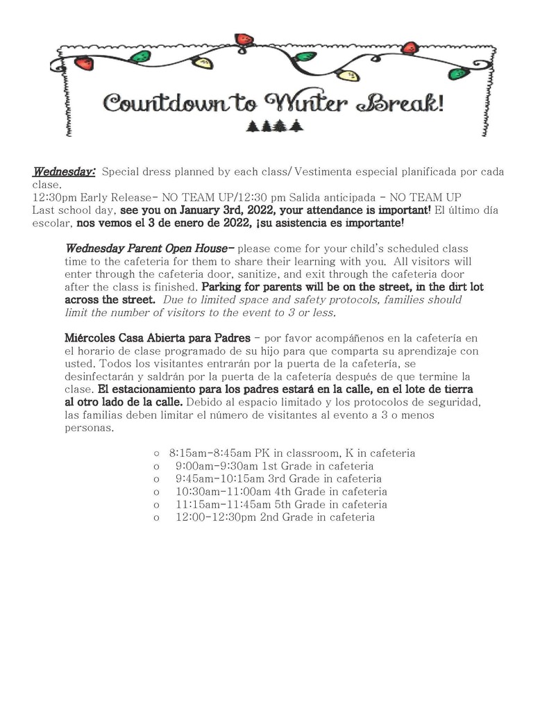Padres, si su conferencia esta programada a las 12:30. Por favor estaciónese en el lote al otro lado de la calle de la escuela. El estacionamiento de la escuela estará disponible a los padres a la 1:30PM